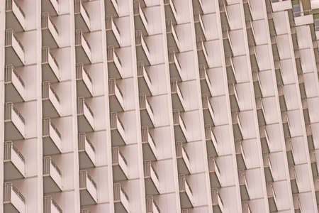 A detailed view of a building featuring numerous balconies. This image can be used to depict urban architecture, residential living, or cityscape views.