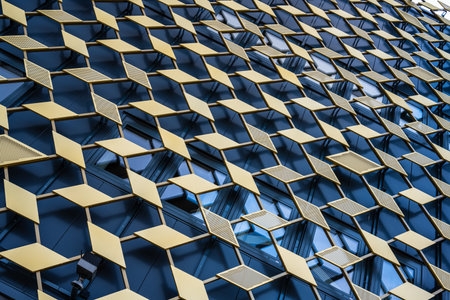 Building facade with geometric pattern. Modern architecture. Residential building in europe city