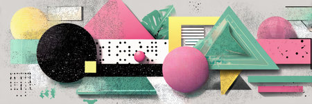Vibrant 80s design with geometric shapes and neon colors showcasing retro influences