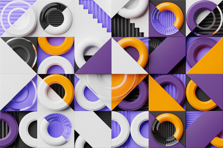 Abstract geometric background with circles, stripes and lines. 3d rendering