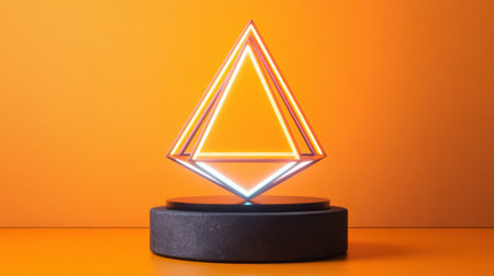 A stunning abstract representation featuring glowing triangular shapes set against a vivid orange backdrop, ideal for creative projects and modern art themes.