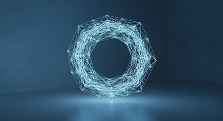 An eye-catching neon blue geometric circle against a deep dark background, exuding a modern, digital aesthetic perfect for tech projects, web design, or innovative graphic presentations.