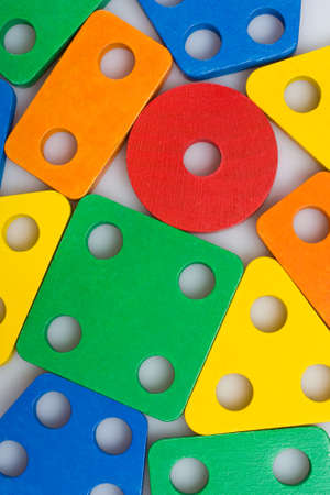 Concept of creative logical thinking. Different colorful wooden blocks. Geometric shapes in different colors.