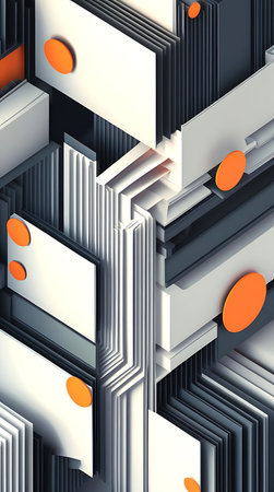A striking abstract composition featuring geometric shapes and vibrant colors. This digital art piece serves as an inspiration for modern design and creative projects.