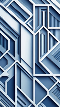 A captivating abstract geometric pattern featuring interlocking shapes in shades of blue and white.