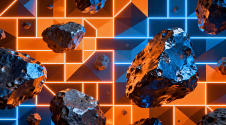 This artwork showcases a vibrant fusion of colors and shapes, executed with a dynamic and futuristic style. Ideal for digital media projects requiring a modern aesthetic, such as website backgrounds, app interfaces, or digital art displays. The seamless texture enhances its versatility for various design applications. AI-generated illustration.