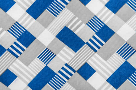 Color Blue and Gray Geometric Square Mosaic Abstract Fabric Pattern Decorative Texture Background Design.