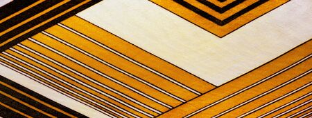 silk fabric with yellow striped pattern. Poncho with Mexican motives. texture, background