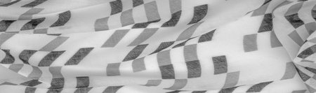 Texture. Background. Template. White silk fabric with black geometric rhombus shapes. dark, sable, ebon, smutty