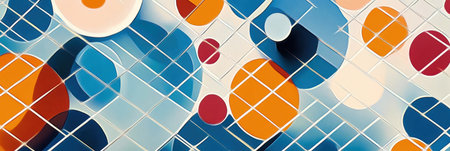A captivating pattern displays large and small circles arranged along a diagonal grid, showing vibrant colors and geometric forms.