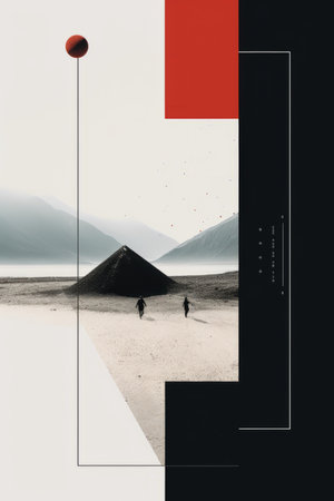 A minimalist composition featuring bold geometric shapes, sharp angles, and a restricted monochrome palette. The balance between negative space and form creates a sleek, modern aesthetic.