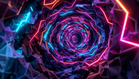 3d illustration of abstract geometric background with neon lights. Glowing spiral tunnel