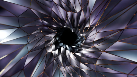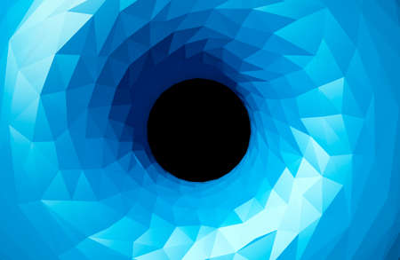 Tunnel or hole with abstract triangular shapes. Abstract low polygonal background in blue toned.3d illustration