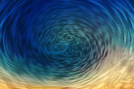 Portal effect. Wormhole of blue and golden colors. Circular spiral tunnel absorbs matter. Fantastic cyan yellow background image of digital space. Abstract backdrop of cyberspace. Spherical warp.