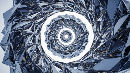 gorgeous complex spiral of diamonds and gemstones unwinding, top view.