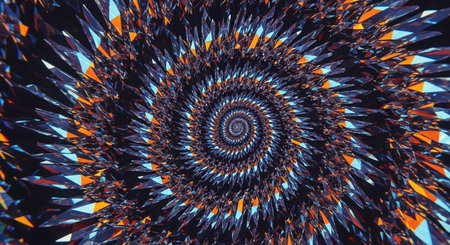 A colorful abstract image of a spiral with orange and blue colors, AI