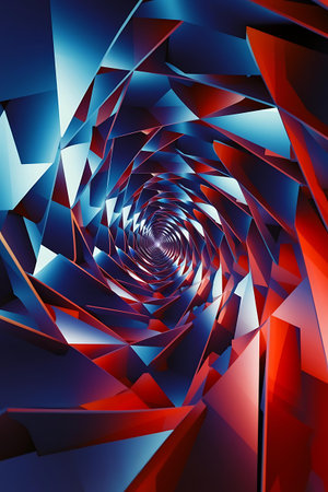 A visually stunning abstract image featuring a dynamic red and blue spiral with circular orbit rotation. This design is ideal for creative projects, futuristic concepts, and presentations with a