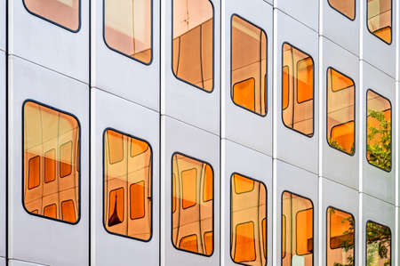 Orange windows on wall. Abstract colorful backgrounds. Cityscape.