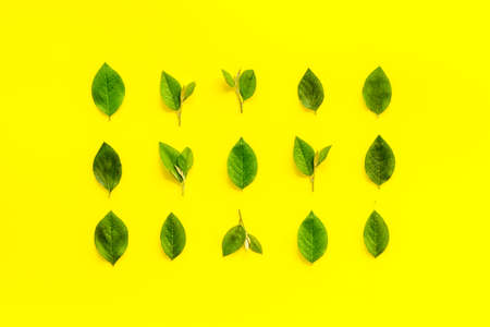 Green leaf arranged into pattern texture background, tropical nature relaxation wallpaper texture, copy space