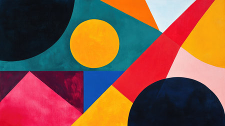 This image showcases vibrant geometric shapes in bold colors, creating an engaging visual experience. Perfect for various design projects and backgrounds.