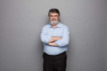 Middle-aged senior grandfather close up portrait. Grey hair white beard old man. Senior man. Face of bearded senior age man. Headshot of senior grandfather pensioner, retiree concept.