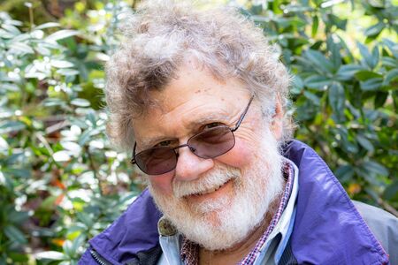 Friendly happy bearded senior male with a twinkle in his eye, a warm, kind healthy confident elderly man outside