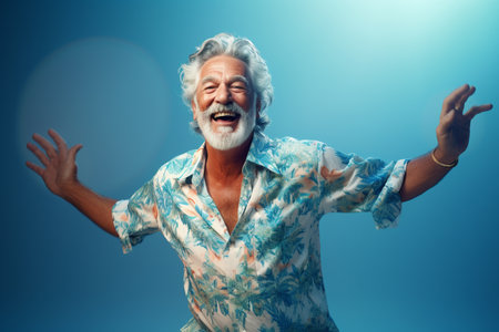 elderly man happy dance on bokeh style warm background