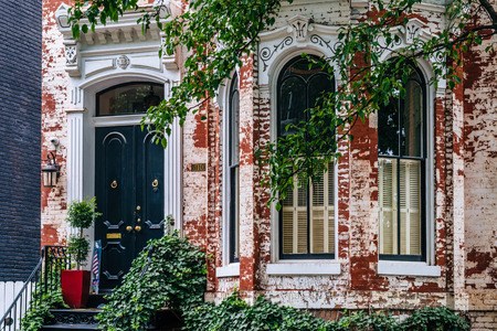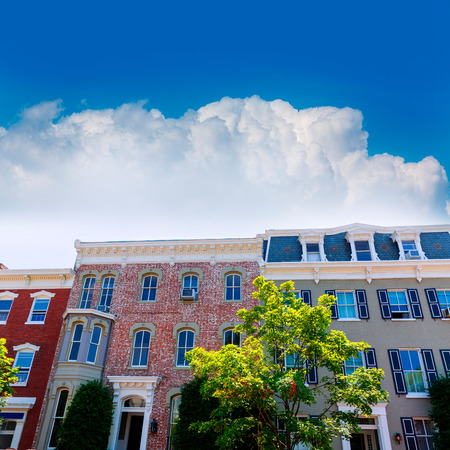 Georgetown historical district townhouses facades Washington DC in USA