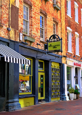 Historic city of Annapolis on Maryland's Chesapeake Bay. various architectural styles in Old Town district.