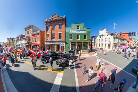 People gather to admire restored classic cars in historic Leesburg Virginia