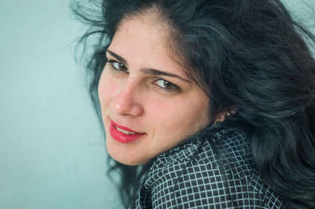 Young woman portrait posing against a clean background with copyspace for text