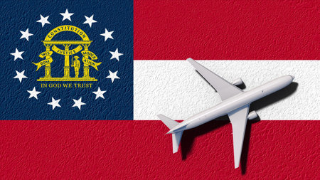 Georgia State Flag And Airplane Fly. Flight And Travel 3D Illustration.