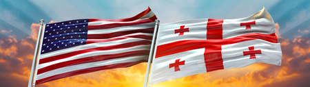 United States of America and Georgia flag waving in the wind, 3D rendering