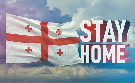 Stay home stay safe - letter typography 3D text for self quarantine times concept with flag of Georgia. 3D illustration.