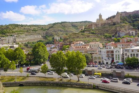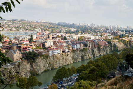 Tbilisi, Georgia - October 21, 2019: Top view on the old part of the city Tbilisi in Georgia in a summer or autumn day