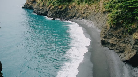 cliffside beach seen from above, waves forming perfect curls --chaos 30 --ar 16:9 --v 6.1 Job ID: e654cb57-c8f2-45a4-b204-59faf249de1a