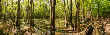 Panorama of Water Filled Trees along the King Snake Trail in Congaree National Park