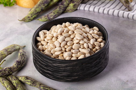 Raw white kidney beans on a gray background