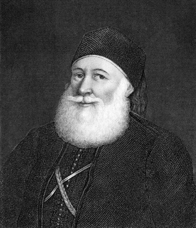 Muhammad Ali of Egypt (1769-1849) on engraving from 1859. Albanian commander in the Ottoman army, who became Wali, and self-declared Khedive of Egypt and Sudan. Engraved by C.Mayer and published in Meyers Konversations-Lexikon, Germany,1859.
