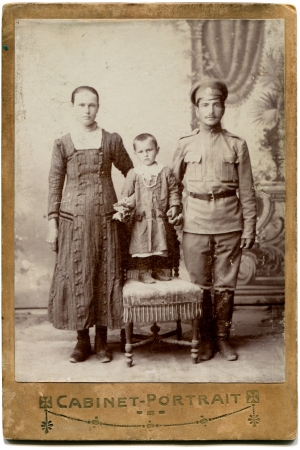 Old family photos. People wearing vintage clothing. Antique fashion dress. Germany, Berlin