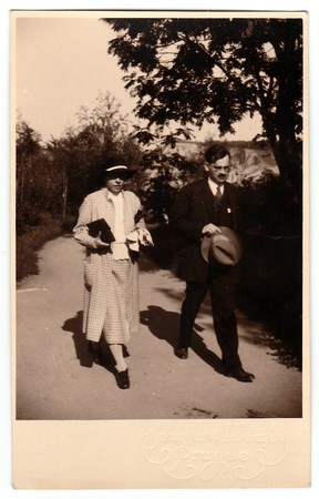 THE CZECHOSLOVAK REPUBLIC, CIRCA 1930s: Vintage photo shows mother and her son who go for a walk, circa 1930s.