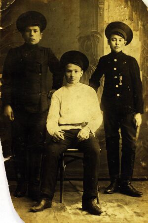 USSR - CIRCA 1947 A teenage in the form of the Baltic Fleet sailors, Krasnoyarsk, circa 1947