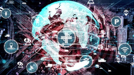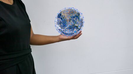 Communication technology for internet business. Global world network and telecommunication on earth cryptocurrency and blockchain and IoT. Elements of this image furnished by NASA
