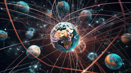 Global digital Network Telecommunication network above Earth viewed from space with connected system