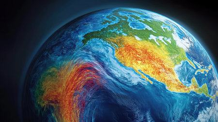A vibrant visual representation of Earth's climate diversity, showcasing the intricate patterns of weather and temperature variations.