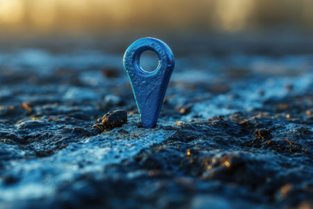 Glowing location pin floating over textured surface