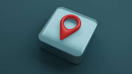pin icon on square shape , 3d rendering