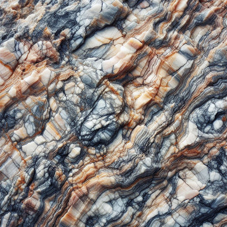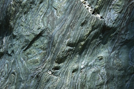 Close-up of layered rock surface with wavy textures and natural marbled patterns