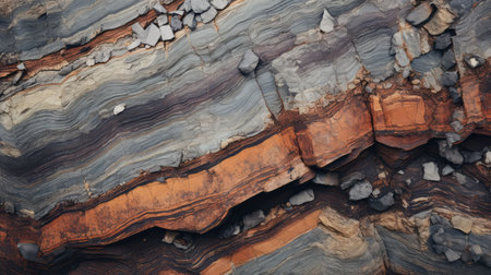Layered sedimentary rock formation with distinct horizontal strata, showcasing varied mineral composition and geological texture. natural earth layers and erosion patterns.