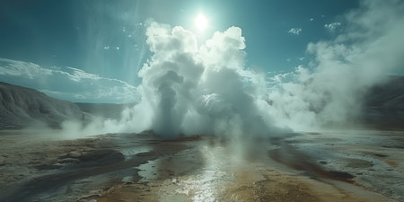 Erupting geothermal geysers release steam in a dramatic natural display